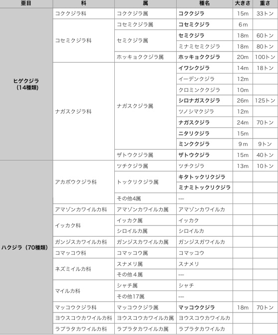 クジラの種類